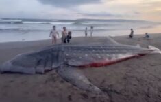 Seekor Hiu Tutul Terdampar di Pantai Pancer Jember