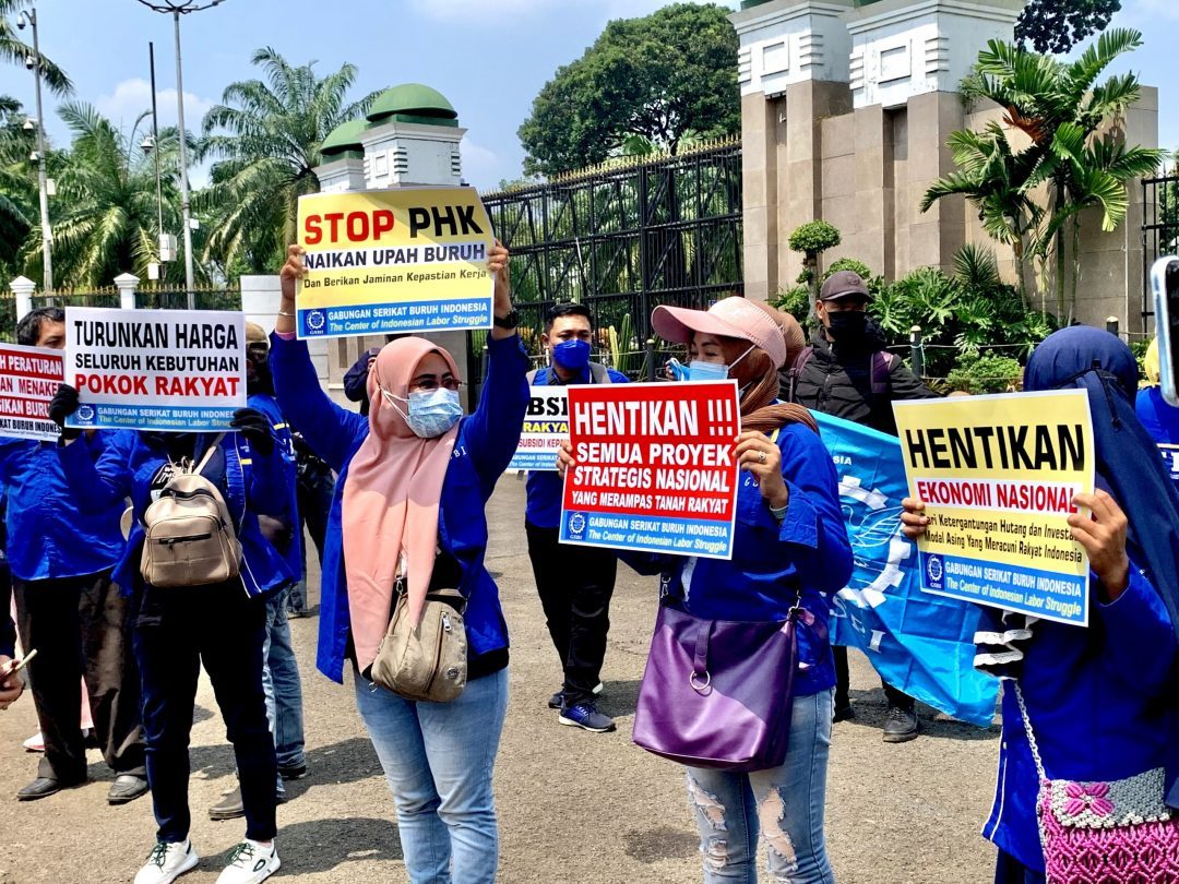 Gabungan Aliansi Buruh Ikut Kawal Mahasiswa di Gedung DPR
