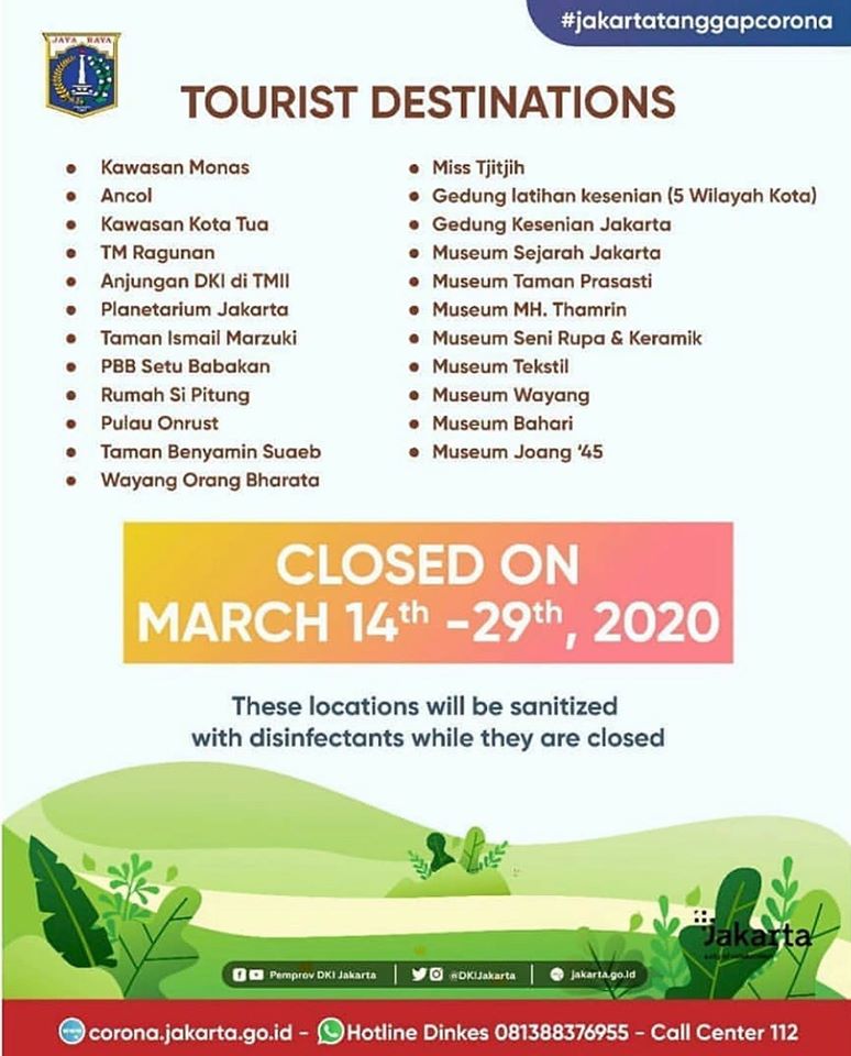Pemerintah DKI Jakarta Tutup Sejumlah Tempat Destinasi Wisata Selama 2 Pekan